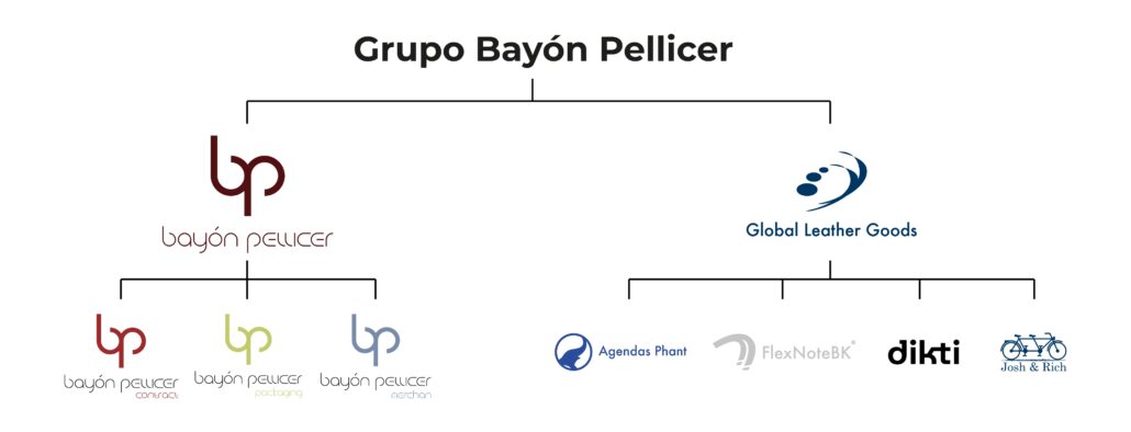Hoy el Grupo Bayón Pellicer se compone de tres compañías integradas de manera vertical. Bayón Pellicer, SL Global Leather Goods, SL Leather Goods Factory, SL Además, el grupo cuenta con diferentes firmas posicionadas en el mercado y con dos tiendas online de comercio B2C.